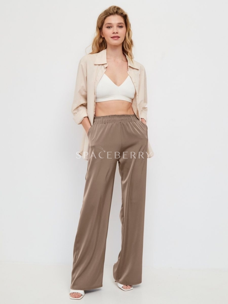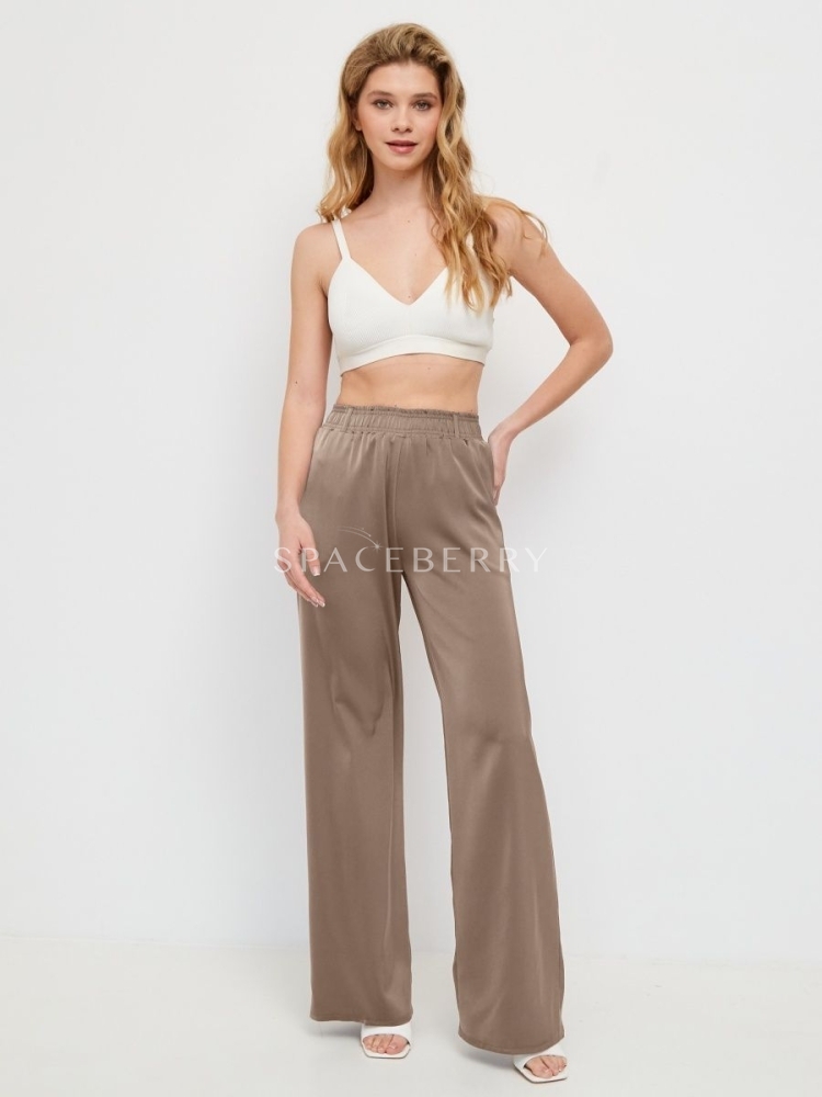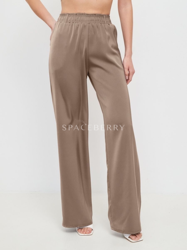 Женские широкие брюки, штаны атласные (темно-бежевый) в Одинцово