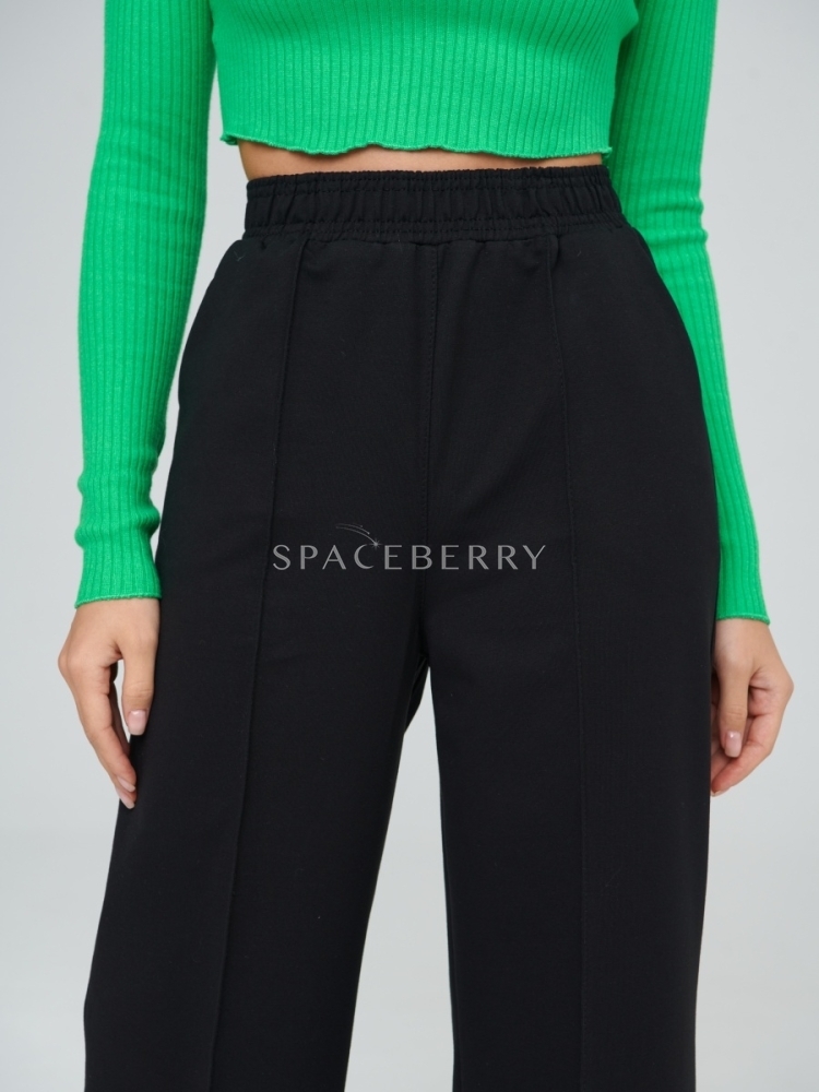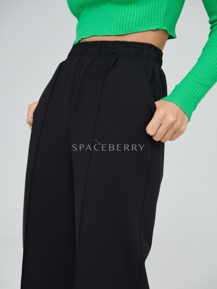 У нас скидки на брюки! Женские прямые широкие брюки из трикотажа - вещь, которая должна быть в гардеробе каждой девушки на летний и зимний сезон! Оригинальная модель идеально сидит на фигуре любого типа благодаря завышенной линии талии, а также отстроченным и заутюженным стрелкам, которые визуально стройнят ноги. Модные брюки на резинке с карманами легко сочетаются в комплекте с жакетом, базовой футболкой, объёмным свитером или рубашкой, с черным кожаным плащом на весну. Благодаря свободному крою, вам не придется жертвовать стилем ради комфорта, брюки кюлоты сделаны из современной плотной и мягкой ткани, которая позволит вам чувствовать себя уверенно в течение всего дня, также подойдут для спорта. Такие штаны палаццо с высокой посадкой с отлично подойдут для девушек подростков невысокого роста, рост модели - 171 см. Стирать данную модель можно на режиме деликатной стирки 30 C. Вы можете найти другие модели одежды нашего бренда, кликнув на логотип Spaceberry. Будем рады вашим отзывам!