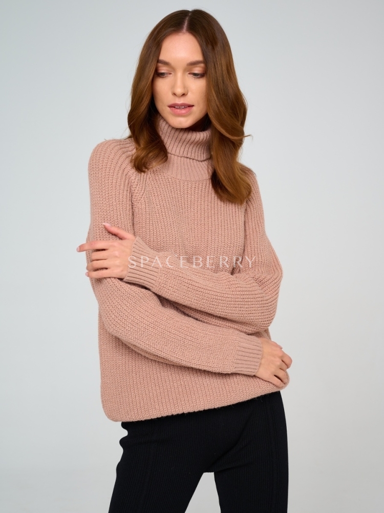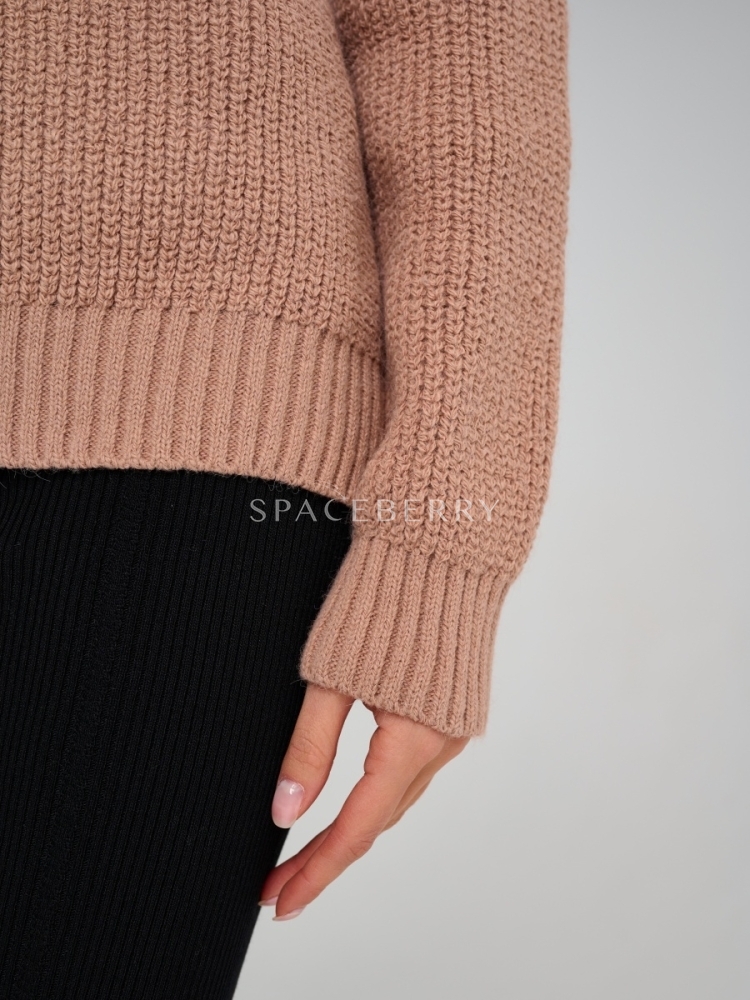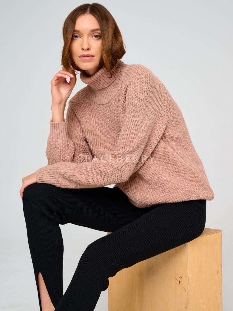 У нас скидки на свитера! Женский свитер - лучший вариант одежды для девушки в холодную осеннюю и зимнюю погоду. Мягкая, уютная ткань позволит вам чувствовать себя комфортно, а покрой оверсайз с припущенными плечами не будет сковывать движения. Джемпер бренда Spaceberry сделан из натуральной шерсти с добавлением акрила, который помогает свитеру держать форму, делает его более долговечным, устойчивым к деформации. Сочетать водолазку можно с юбками и брюками, джинсами и платьями из струящихся материалов в черных и коричневых оттенках. Такая кофточка подходит как для беременных, кормящих мам, так и для подростков в школу. Джемпер может стать прекрасным новогодним подарком. Свитер имеет высокое горло "гольф", длинные рукава с манжетами. Длина модного демисезонного бадлона - 59 см, рост модели - 173 см. Стирать данную модель рекомендуется на режиме деликатной стирки 30 C. Вы можете найти другие модели одежды нашего бренда, кликнув на логотип Spaceberry. Будем рады вашим отзывам!